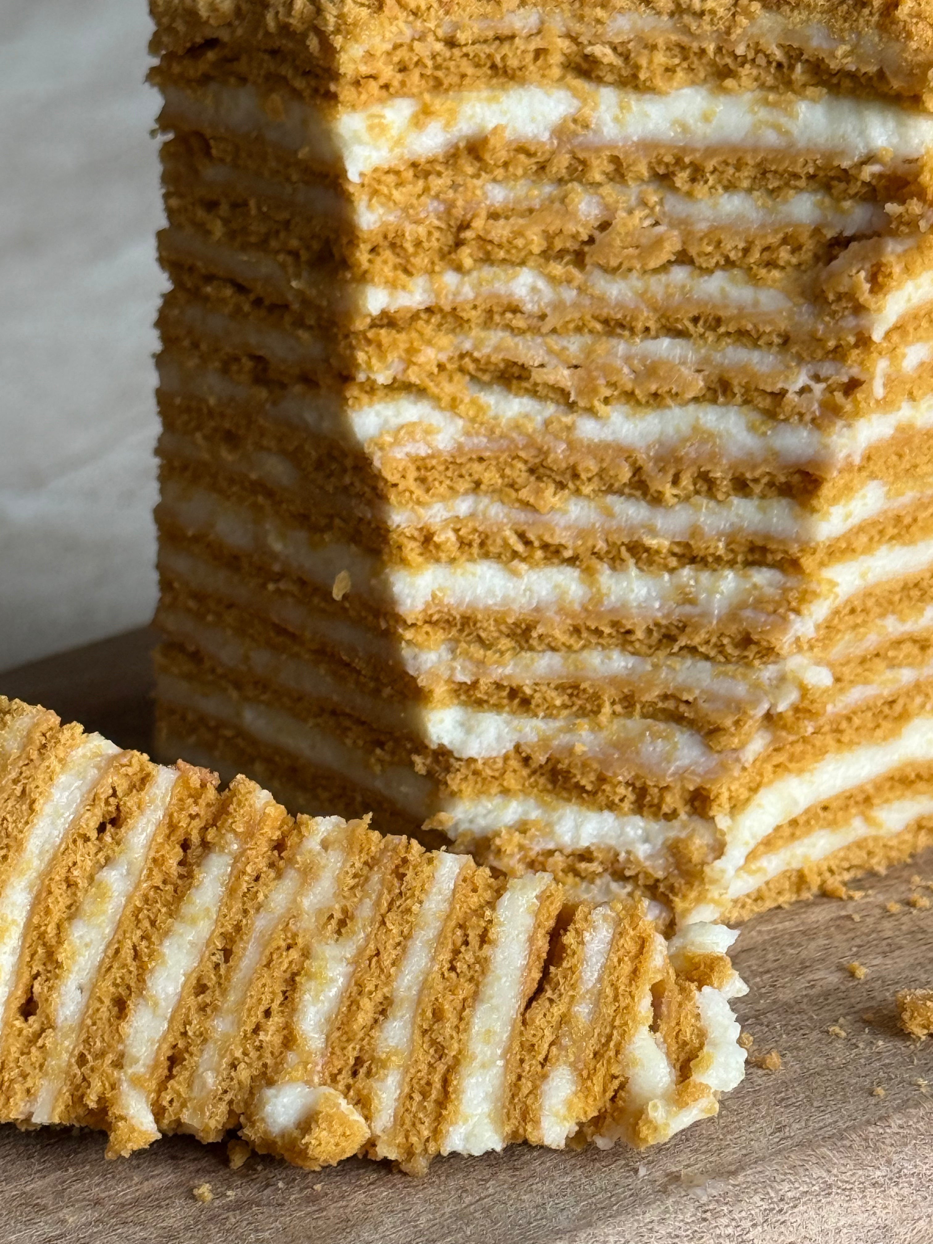 A limited Mother’s Day dessert box featuring a 5” round honey cake with classic crumb sides, topped with “Mum” and fresh raspberries, plus 2x honeymisu and 1 traditional gata.